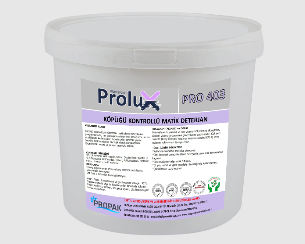 Ticari ve otel çamaşırhanelerinde kullanılmak üzere formüle edilmiş komple bir toz deterjandır. Ürün manüel ve otomatik dozaj sistemlerine uygun olup tüm su sertliklerinde kullanılabilir. Tüm beyaz pamuklu ve polyester / pamuklu çamaşırlarda ve sabit renklilerde kullanılabilir. Köpüğü kontrollüdür. Otomatik makinelerin tüm yıkama programlarında her tür çamaşırda mükemmel sonuç verir.
